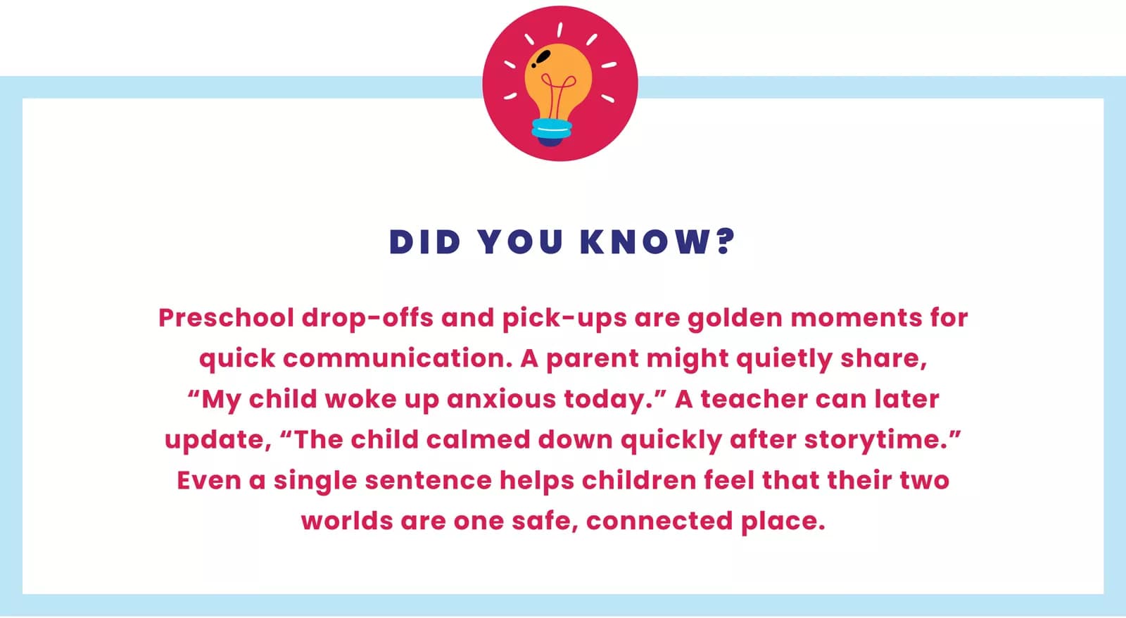 - Shared routines: If the preschool plays a lullaby during naptime, parents might sing a gentle song before bedtime at home too. Familiar signals help children feel secure.