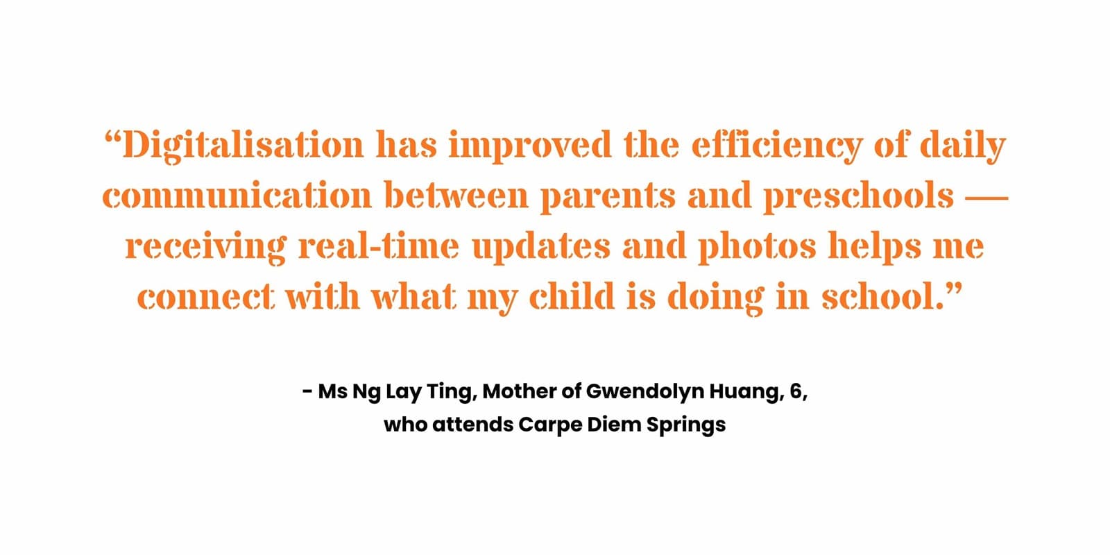 Having been an educator for 12 years, Ms Farah recalls a time when physical consent forms were handed out to parents and children’s daily attendance was manually recorded with pen and paper. In the past, teachers would collect cash for field trips, dispense change, and remind parents to submit consent forms. Digitalisation has streamlined these processes. With an app, parents can pay digitally, access and sign consent forms online as well as receive reminders for submission.