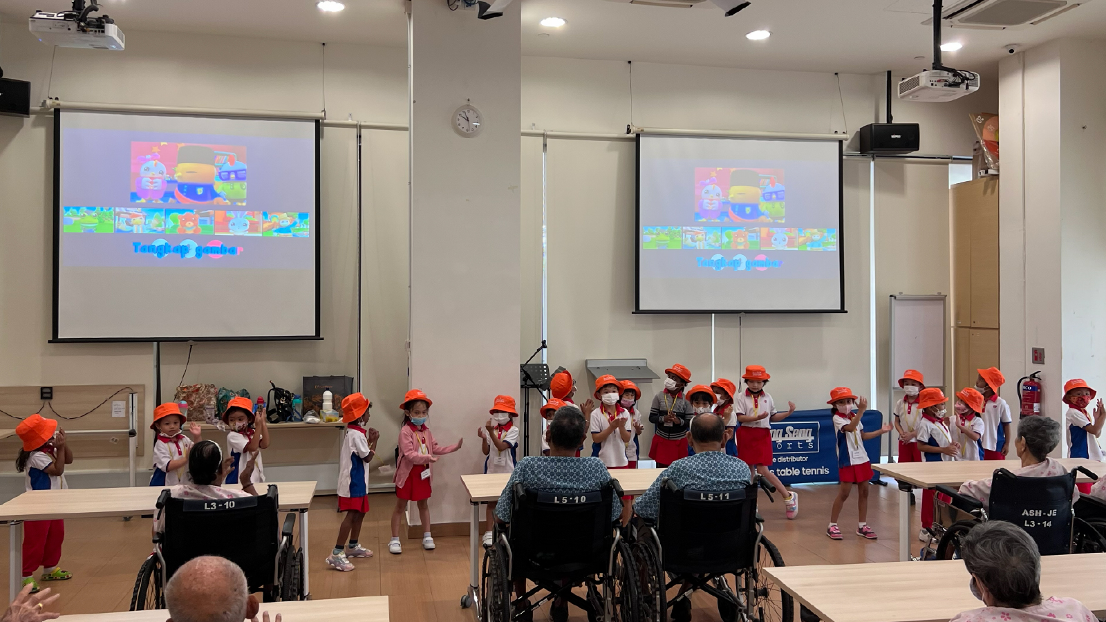Children from PCF Sparkletots @ Boon Lay Blk 262 performing for seniors at All Saints Home.