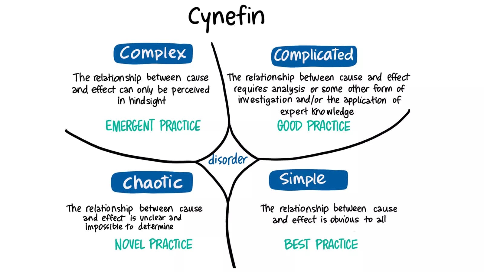 - Clear (or Simple), requiring a sense-categorise-respond approach