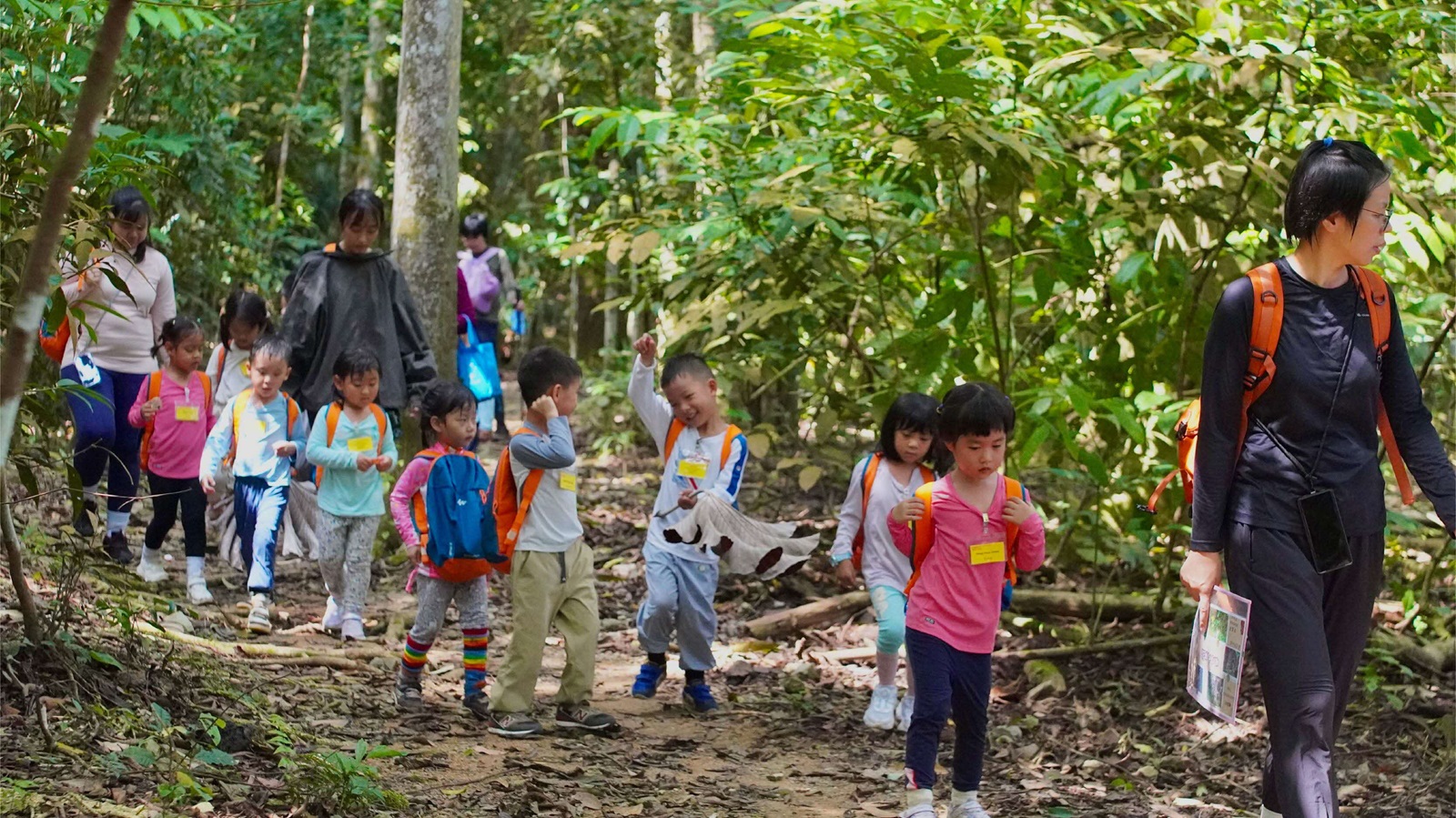 For now, the final quest that the K2 children embark on just before graduation is a morning forest trail on the boardwalk in pairs — venturing “solo” after numerous guided trips — as their teachers hide behind the foliage to film this heartwarming milestone.