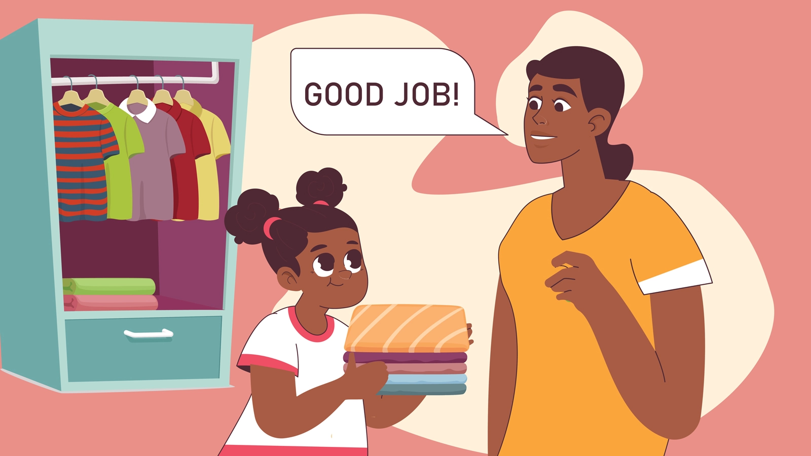 Praise your child to reinforce positive behaviour, such as tidying their wardrobe.