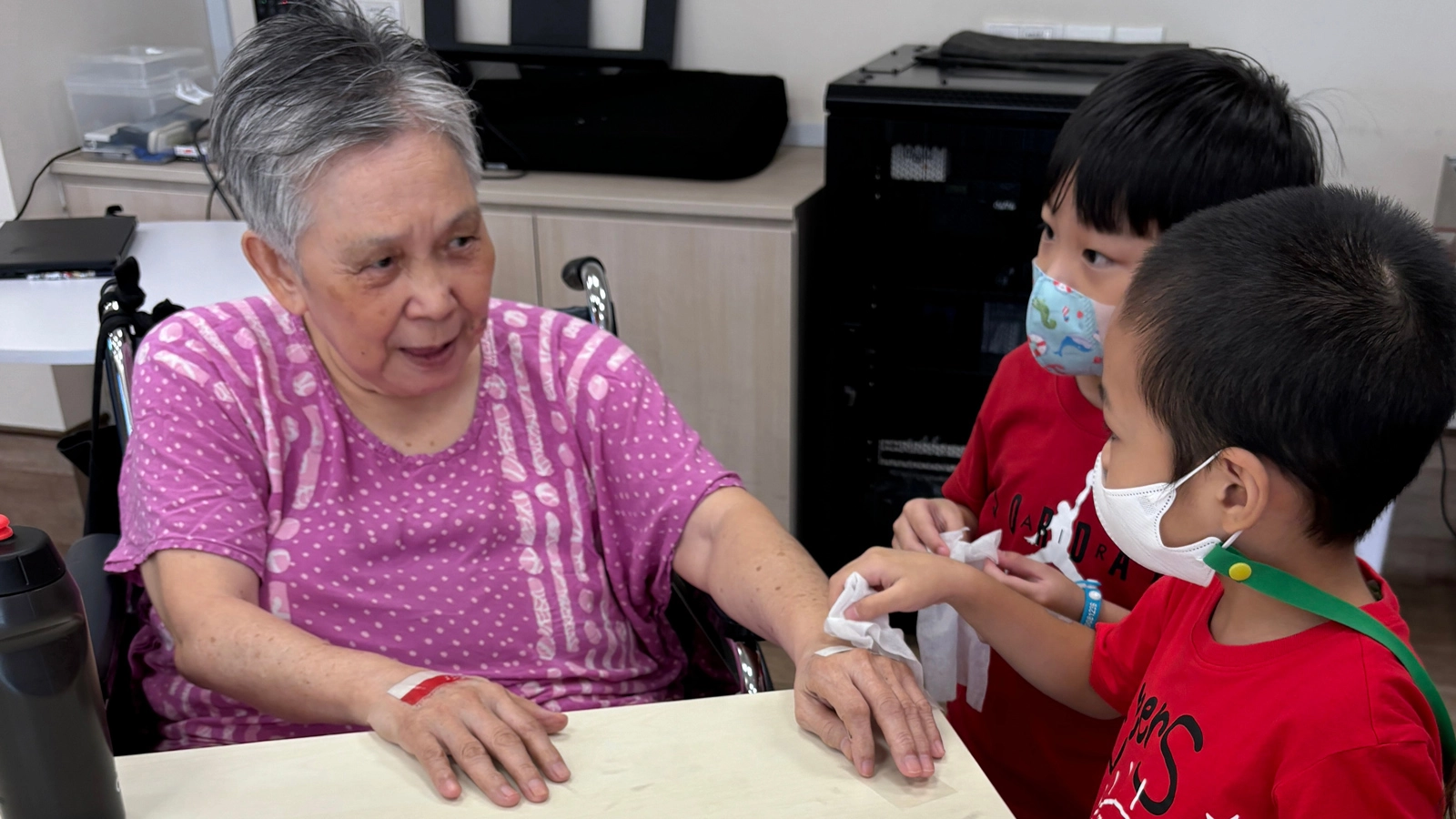 The preschool partnered with the nursing home through AIC, whose experience in running inter-generational programmes helped educators plan meaningful SSDB activities that both young and old could enjoy, fostering interactions between the two groups.