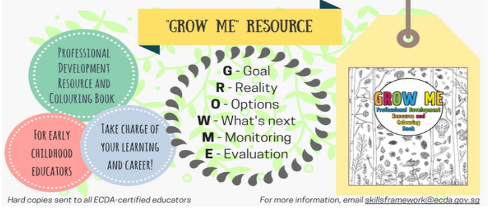 The “ GROW ME” Professional Development Resource and Colouring Book aims to help Early Childhood educators take charge of their learning and chart their career growth. We encourage you to use this resource together with the Skills Framework for Early Childhood, the CPD Prospectus and ONE@ECDA. We wish you success as you grow as an EC educator!