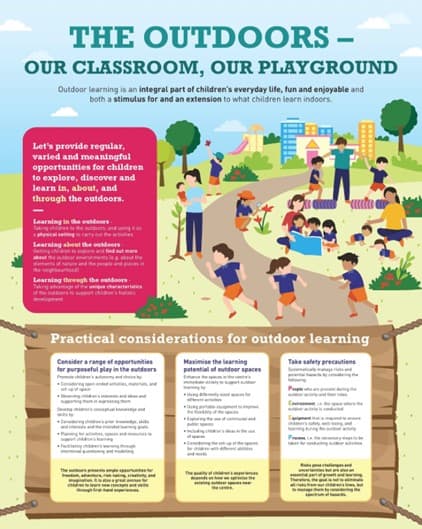 You may refer to the following set of materials which have been put together to support educators in facilitating outdoor learning for children: