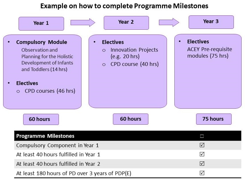 The PDP for Infant and Early Years Educators is a 3-year 180-hour structured professional development (PD) programme that prepares infant / early years educators to take on larger job roles by: