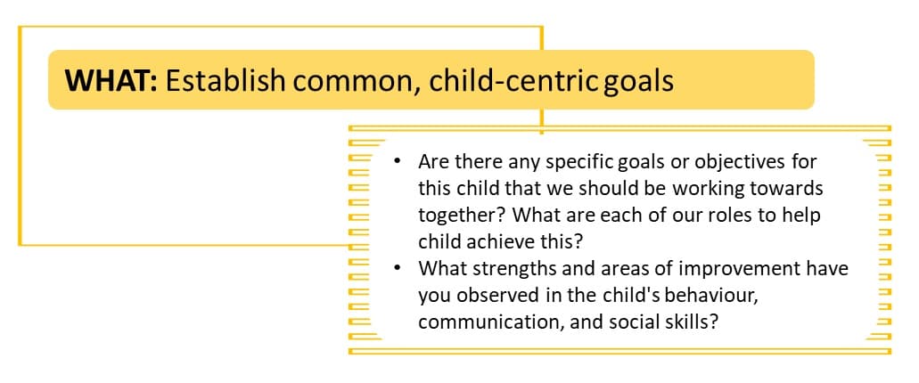 - Keep a child-centric approach to share multiple perspectives of the child in different settings