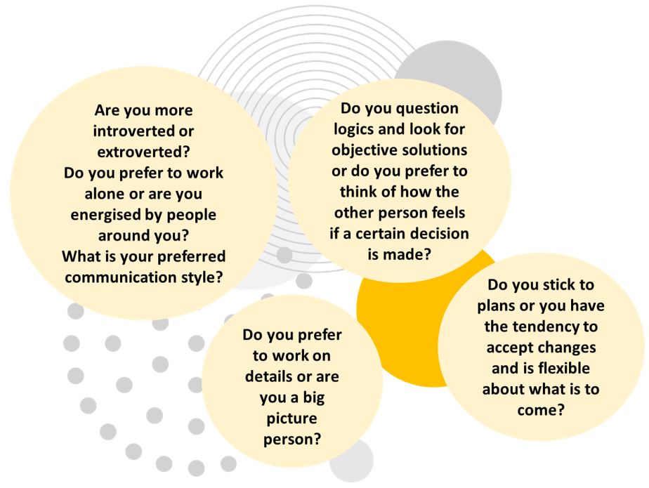 Awareness of different personality types enables you to accept others who are not likely to have the same thinking as you do, and you would more naturally adjust your approach and expectations. While you get to know more about yourself, you will also be more cognizant that others too can have their views about you.
