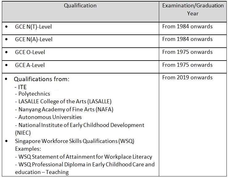 - Starting from 4 Jul 2022, preschools applying teacher certification for staff (both employed and pre-employed) who possesses the local qualifications listed in Table A are required