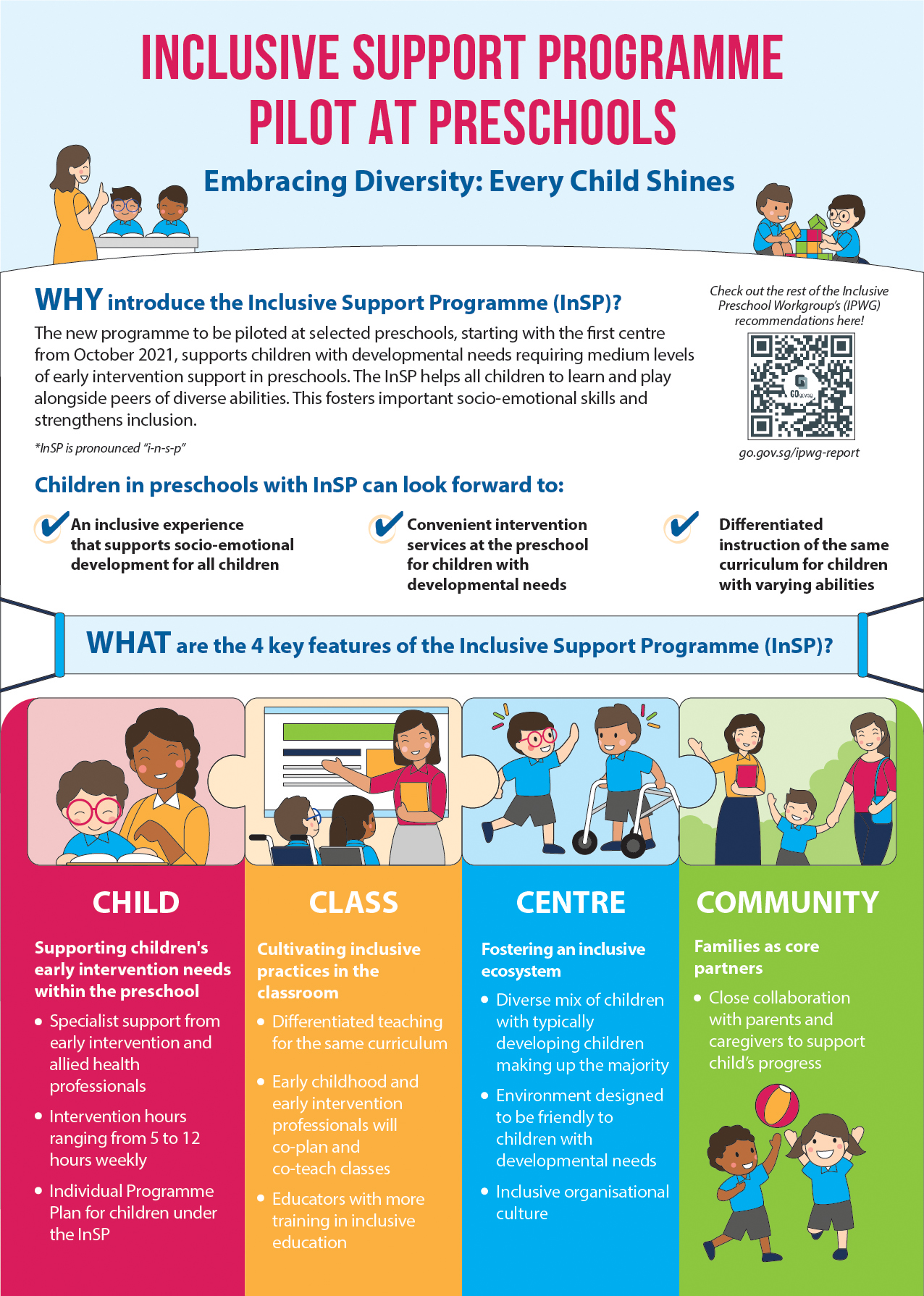 The InSP caters to children with developmental needs aged three to six who require medium levels of early intervention support.
